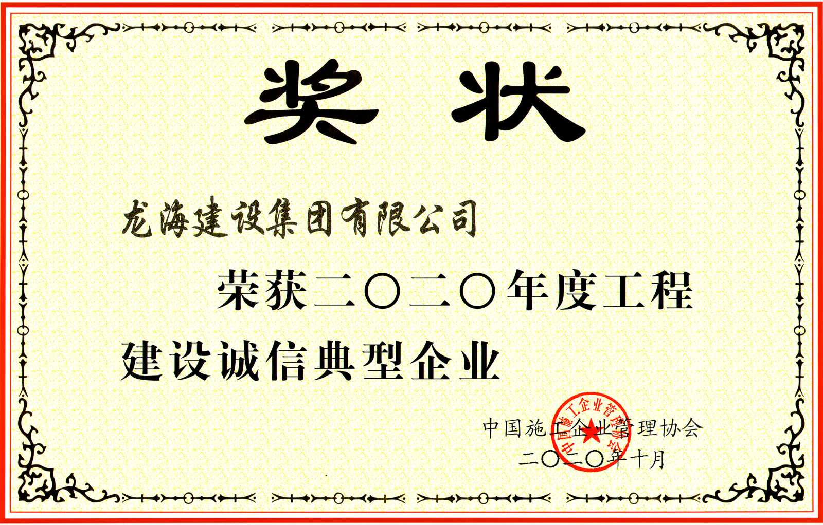 12月4日上午,中國施工企業(yè)管理協(xié)會在廣西南寧召開《2020年度工程建設(shè)誠信企業(yè)推介大會》,公司再次榮獲“工程建設(shè)誠信典型企業(yè)”榮譽稱號。